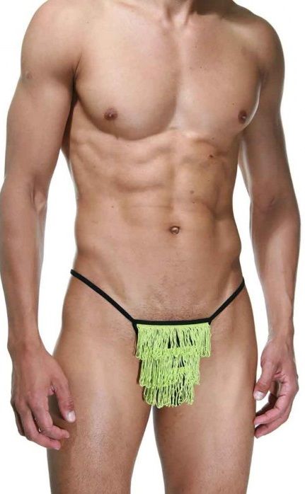 Трусы мужские на тоненьких резинках с яркой контрастной бахромой, нашитой в три ряда.
